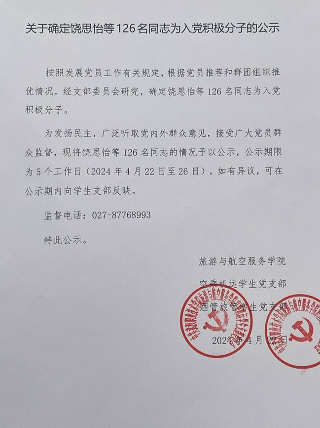入党积极分子名单在逸云楼一楼公示栏进行公示。