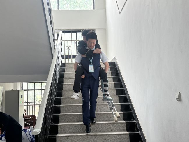 “同学,你的考场是几号?你先坐在轮椅上,等会我背你上去。”刘龄童走上前,为他提供了轮椅、背扶等帮助,确保他能够顺利参加考试。在整个考试过程中,他始终守候在考场外,随时准备着为该考生送上暖心服务。技能高考结束后,刘龄童收获了来自考生及家长的衷心感谢和好评。
