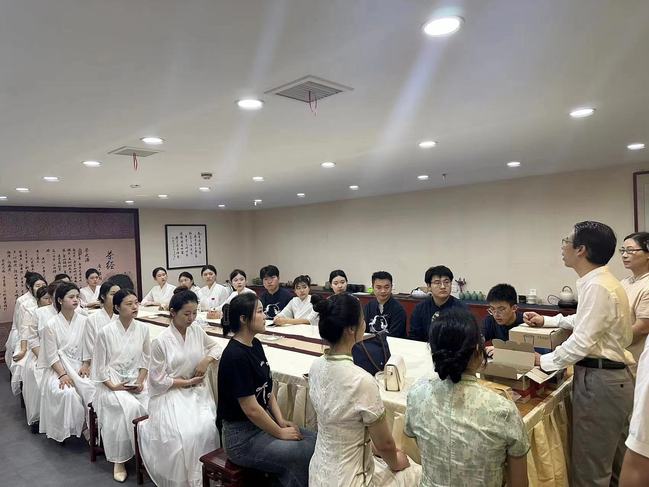 在5.21国际茶日主题活动中,茶水服务和颁奖礼仪是志愿服务的重点工作。在国际茶日活动开始前,武职老员工茶艺社团志愿者已经提前为每桌嘉宾泡好了茶水,并摆上了精美茶点。她们用热情的态度和专业的技能,为参会嘉宾提供了细致周到的服务,使嘉宾们在品茗闻香的素雅氛围中愉快交流。