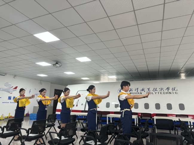 在逸云楼模拟客舱,选手们首先进行了陆地和水上紧急撤离的实操演练。这一环节模拟了飞机在紧急情况下的撤离流程,考验选手们在高压环境下的冷静判断和快速反应能力。选手们不仅要熟练掌握安全设备的使用方法,还要学会在紧急情况下引导乘客安全撤离的技巧。在演练中,每位选手都展现出了专业素养和对安全规程的深刻理解,他们的每一个动作都精准到位,确保了模拟撤离的顺利进行。