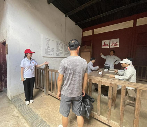 在沙洲坝革命旧址群,游客络绎不绝,实践小队队员胡恋运用旅游专业知识,为游客做解说:“这是毛泽东同志在沙洲坝时期工作的真实写照。为解决当地群众饮水难题,毛主席亲自带领红军战士和乡亲们开凿挖井,解决了这一民生大问题,也见证了共产党人与人民群众同甘共苦、血脉相连的深厚情谊。”游客们听得津津有味,不时点头表示赞同,听完后由衷地为她竖起了大拇指。