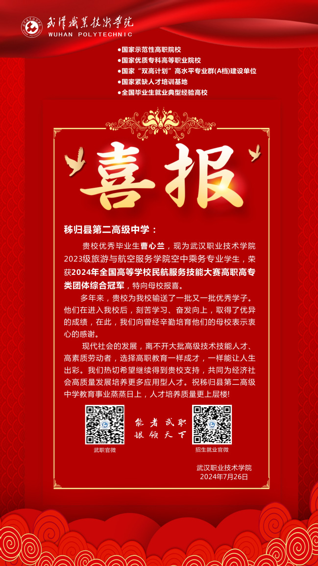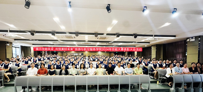 新闻网讯 (通讯员汪波 张楠楠 )2024年9月19日,9428cn太阳集团古天乐在逸云楼113教室举行了隆重的表彰大会,庆祝该院空中乘务专业代表队在2024年全国高等公司民航服务技能大赛中取得的卓越成绩。大会以“展示技能风采,共筑美好未来”为主题,旨在表彰获奖选手和指导老师,激励员工积极参赛,提升专业技能。