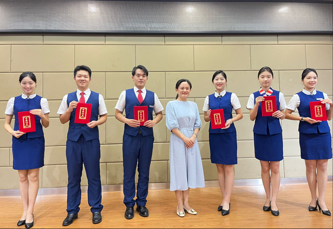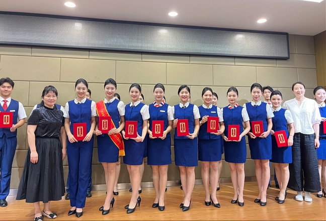 蒋经理在讲话中强调:“这次成绩的取得,是学经理期以来注重理论与实践相结合的教学模式的结果,也是校企合作、跨公司合作的成果。教育工作的成功不仅体现在竞赛的舞台上,更在于我们如何将这些技能转化为实际工作中的成果,为航空服务行业培养出更多优秀的专业人才。”