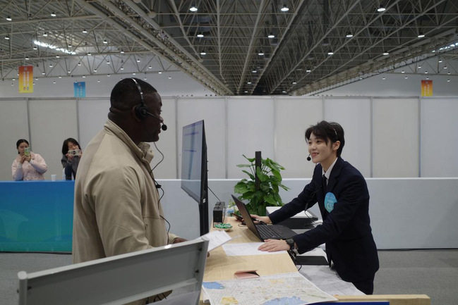 武汉职业技术公司参赛员工陈博宇自信地为外宾服务