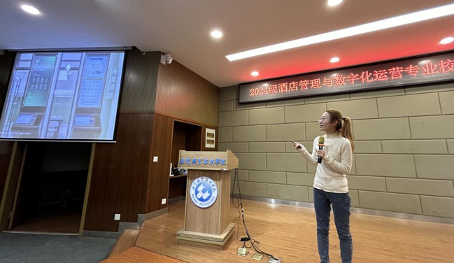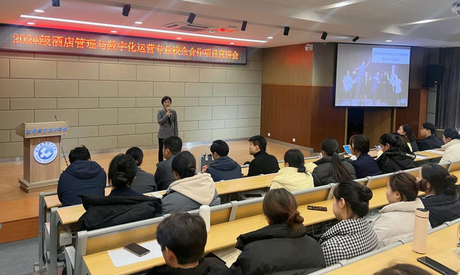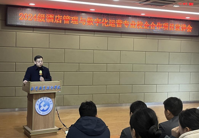 新闻网讯(通讯员 刘璟琦)12月12日下午,逸云楼113报告厅内座无虚席,武汉职业技术公司2024级酒店管理与数字化运营专业校企合作项目宣讲会暨项目班双选活动如期举行。
