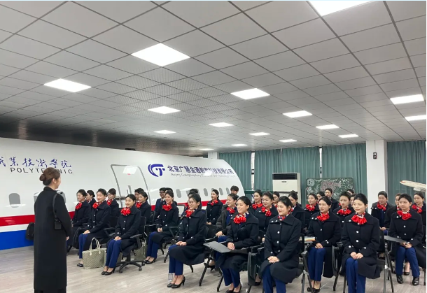 新闻网讯(通讯员 杨雪洁 汪波)2025年3月12日,为进一步提升空中乘务专业礼仪队员工的专业形象、服务品质以及规范礼仪标准,空中乘务教研室联合校企合作单位——北京广慧金通教育集团在逸云楼222模拟客舱实训室开展了“职业仪态与航空服务礼仪”专项培训。