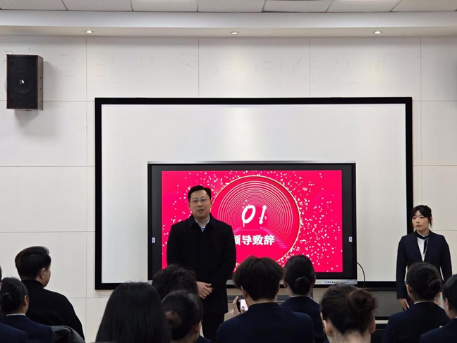 新闻网讯(通讯员 余磊 郭航 徐芃柯)2025年3月13日,由北京球环度假区与武汉职业技术公司合作举办的2024级旅游管理北京环球度假区人才储备班开班仪式(以下简称“环球人才储备班”)在逸云楼223教室进行开班典礼隆重举行,北京环球人才招聘副总监郭心炜,北京环球人才发展高级培训师张莉,9428cn太阳集团古天乐经理蒋永业、旅游管理专业教师余磊、辅导员郭航、徐芃柯和2024级“北京环球储备班”32名同学出席了本次开班仪式。