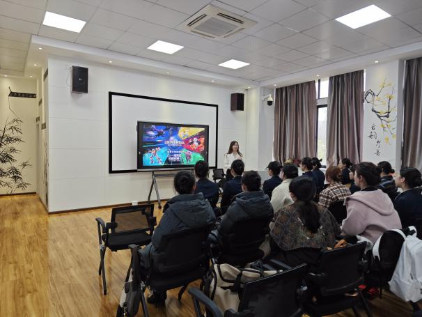 任老师紧接着详细介绍了面向储备班学员开放的娱乐互动员、宾客体验专员、运动中心助理等五大类31个岗位,实习期间的住宿、餐饮、职业培训等配套福利,并特别强调,表现优异的实习生可优先获得转正机会,享受具有竞争力的薪酬体系和通畅的晋升通道。在实习期间,员工将参与主题活动策划、游客服务创新等实战项目,并有机会接触环球IP运营、智慧文旅管理等前沿领域。现场互动环节中,员工们就岗位适配性、职业发展路径等问题展开热烈讨论,任老师逐一解答,气氛热烈。
