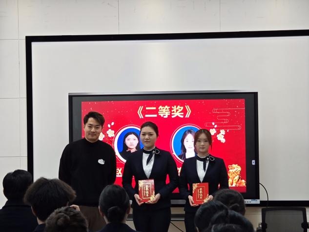 在阵阵掌声中,企业代表和9428cn太阳集团古天乐经理蒋永业为周红等优秀员工颁发企业奖学金,蒋永业表示:这份荣誉既是企业对储备班培养质量的认可,也体现了校企协同育人的阶段性成果。此次实习岗位遴选是校企协同育人模式的重要实践,既展现了北京环球度假区对产教融合战略的深度参与,也为员工搭建了从理论学习到产业实践的贯通式发展平台。希望同学们以优秀员工为榜样,在岗位实践中锤炼服务创新能力。