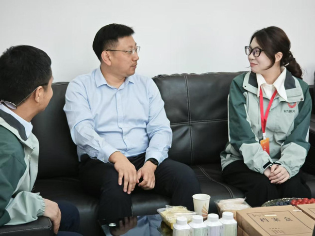 活动期间,蒋永业与正在新阳光旅行社实习的研学22301班员工代表朱欣婷进行了亲切交流。朱欣婷分享了岗位实践体会,表示在企业实习过程中提升了专业技能和职业素养。