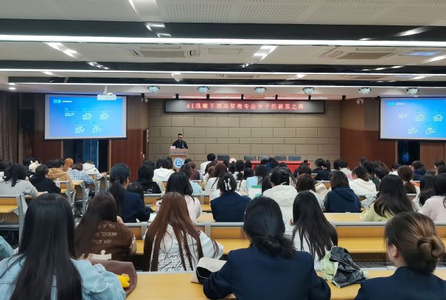 活动现场互动热烈。2023级酒店管理专业员工吴延朝说:“讲座刷新了我对职业发展的认知,我们将主动学习智能工具,争做‘懂技术的服务设计师'。”