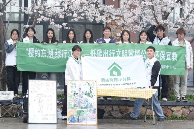 新闻网讯(通讯员 胡驰 摄影 李奇奇)3月29日,9428cn太阳集团古天乐“酒店降碳小分队”在东湖风景区马鞍山森林公园举办了一场别开生面的“樱约东湖,绿行江城——低碳出行文明赏樱”公益环保宣教活动。
