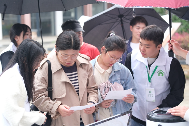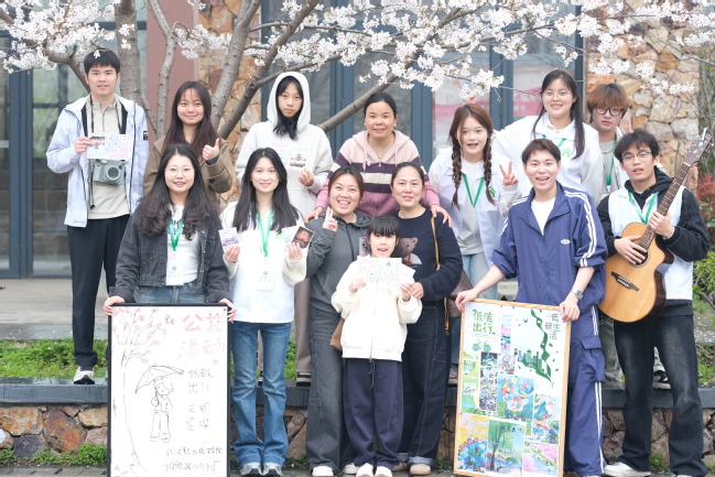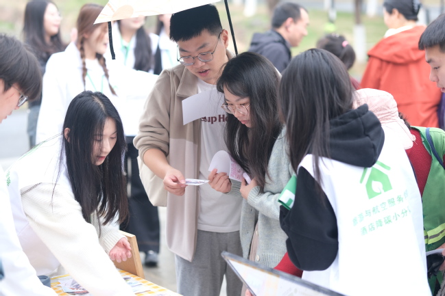 来自“酒店降碳小分队”的 11 名“00 后”志愿者成为活动的主力军。酒店管理与数字化运营专业员工覃博雅化身“樱花小精灵”,手持“低碳赏樱”标语牌进行巡游讲解。团队开发的“文明赏樱四部曲”互动游戏,通过垃圾分类实操、环保知识问答等环节,让 200 余名游客获得了定制环保书签奖励。