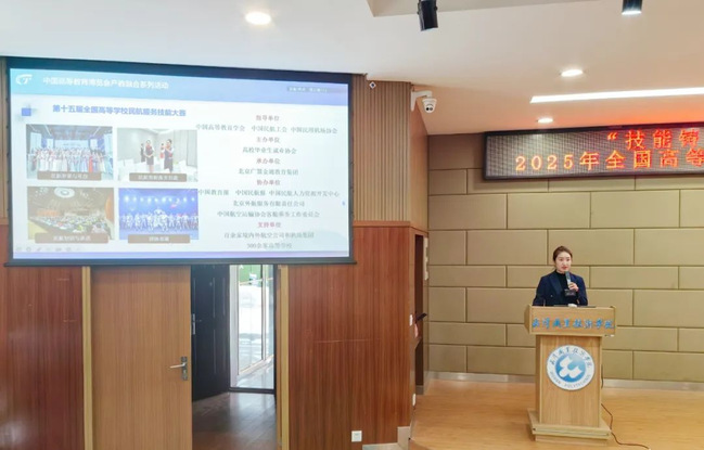 随后,校企合作单位北京广慧金通教育集团驻武职大工作处主任张楠楠详细解读2025年全国高等公司民航服务技能大赛的赛制,并鼓励员工们积极报名。