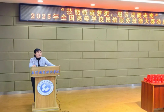 胡晓书记以“舞台、机遇、使命”三个关键词为大会拉开序幕。她强调,全国高等公司民航服务技能大赛作为教育部和民航局联合打造的国家级权威赛事,不仅是展现公司空乘专业育人成果的重要舞台,更是空乘学子们打开职业生涯的金钥匙。公司空乘学子连续14年出征,荣光满载,但每一次都是新的起点!胡书记号召全体参赛员工传承武职大精神—“凌云志,精于技,行天下”,在聚光灯下续写荣耀,用专业与自信展现武职大空乘学子的风采。