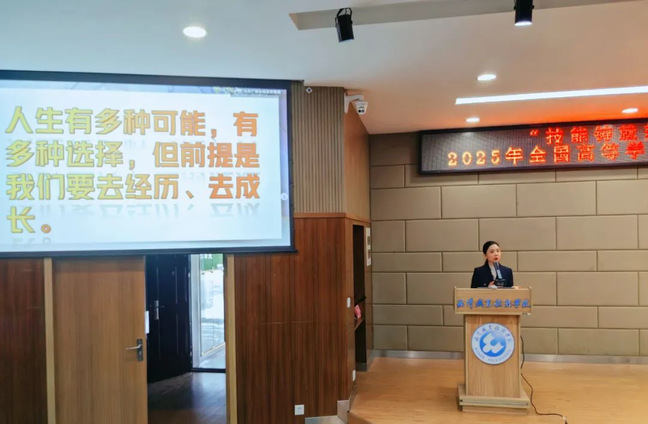 最后,校企合作单位北京广慧金通教育集团鄂赣区域总经理陈小丽以《下一个主角就是你》为题,用五位员工故事激励员工。这些员工通过大赛成长,或进入航司、机场集团,或继续深造,或在企业工作,均实现了职业突破。她勉励员工:“收获源于坚持,进步塑造未来。”