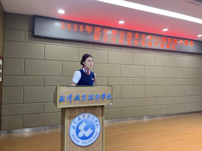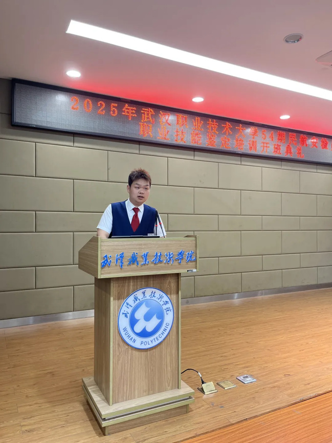 在经验分享环节,第50期优秀学员空乘专业2023级王宇轩以《格物岂惟阳明竹,此身亦渡虹桥》为题,分享自己参加安检培训班的“通关秘籍”。他坦言:当他在模拟考第137次把正确答案改错时,突然懂了王阳明格竹七日的执念;那些背到淤青的深夜,原来都是苏轼笔下庐山烟雨的迷雾,不过是看透本质后对知识的敬畏……王宇轩学长幽默富有哲理的讲述,赢得了台下阵阵掌声。