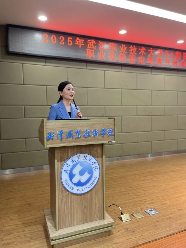 校企合作单位——北京广慧金通教育集团鄂赣区域总经理陈小丽为开班典礼致辞,她以安检工作的社会价值为切入点,强调“技能是立身之本,责任是职业之魂”。并激励员工们“以考促学,用奋斗为青春赋能,做到知行合一,做脚踏实地的追梦者。”