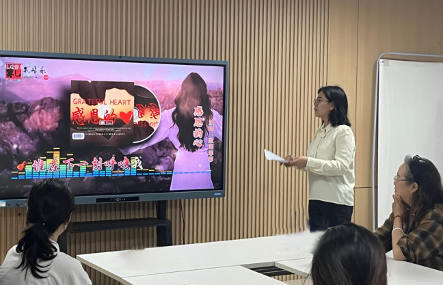 活动伊始,全体师生齐声合唱《感恩的心》。温暖的歌声中,师生们以手机灯光为伴,用音乐传递感恩之情。周晓梅教授全程参与互动,与员工们共同打节拍,现场氛围温馨融洽。