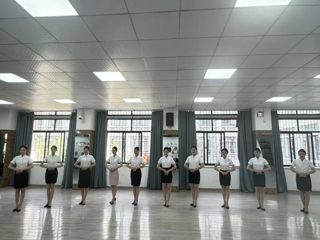 第一环节是海选大考。以班级为单位集体入场展示专业化形象,重点考察:专业化形象、仪态礼仪和亲和力。