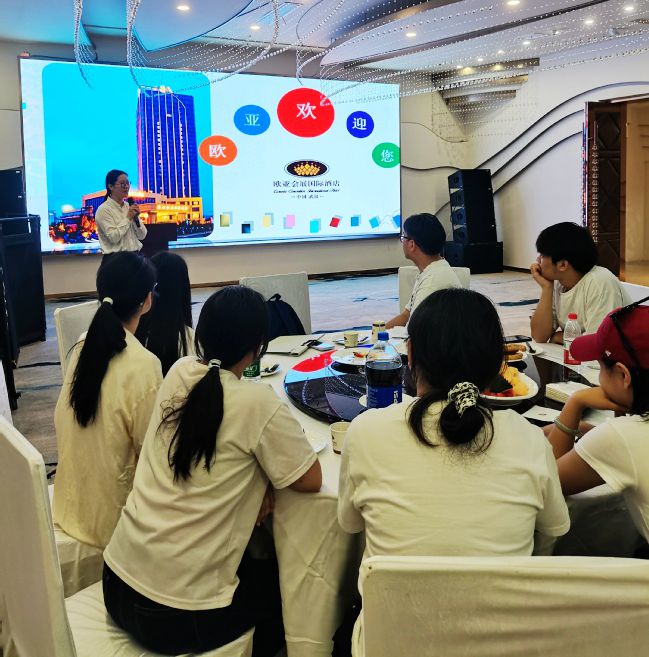 在酒店管理团队的精心安排下,60余名师生分组深入武汉欧亚会展国际酒店前厅、客房、餐饮等核心运营部门进行岗位参观和沉浸式体验实操。在前台接待系统操作、客房标准化服务演练、宴会统筹管理等实战环节中,员工零距离感受现代酒店智慧化运营场景。