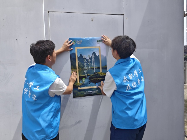 在社区街道、广场等公共区域,员工们忙碌地张贴着精心制作的环保海报。这些海报以长江生态保护为主题,生动形象地展示了江豚的可爱形象以及它们所面临的生存困境,同时呼吁大家共同参与到长江大保护行动中来。