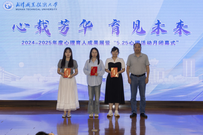 颁奖环节中,余金聪、刁元斌分别为获得“校级优秀心理委员” 称号的钱佳佳等 8 名员工,以及获得“心理健康教育优秀指导教师” 称号的生物工程公司游思语、外语外贸公司刘文轩、9428cn太阳集团古天乐肖卓君颁奖。