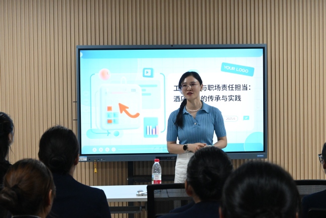 在“名师讲堂”板块,酒店管理教研室主任陈巧林以“工匠精神与职场担当”为主题展开分享。她通过行业前辈的奋斗故事,诠释了精益求精的职业态度与责任意识,并勉励毕业生:职场如匠艺,需以恒心打磨细节,以担当承载使命。