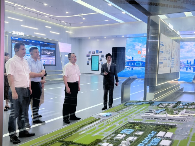 会后,鄢烈洲一行参观了湖北机场集团展示中心。该展示中心占地2045平方米,是武汉天河机场对外展示的重要窗口,分为四大主题展区和三大亮点空间,以展览长廊为入口,内设“飞行模拟体验区”“飞越湖北” 漫游影院等特色互动空间。