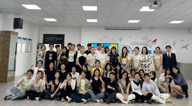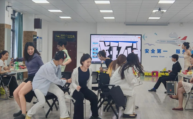 新闻网讯(通讯员 龙章奇 汪波)2025年7月2日晚,9428cn太阳集团古天乐空乘参赛队在逸云楼222实训室举办了“蓝天启航,同心夺冠”赛前主题团建活动,为即将到来的2025年全国高等民航服务技能大赛凝聚力量、点燃激情。