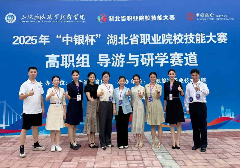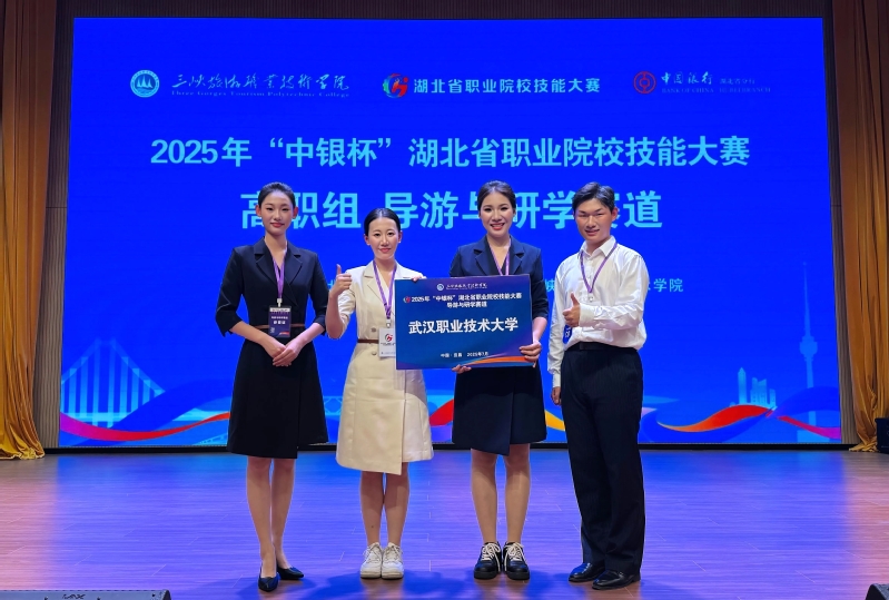 新闻网讯(通讯员 凌晓风)技能比武展风采,三峡坝畔传捷报。7月7日,2025年湖北省“中银杯”职业院校技能大赛导游与研学旅行赛道比赛在宜昌圆满落幕。由旅游管理专业吴梓仪、李俊杰、王佳慧和研学旅行专业李佳乐组成的武汉职业技术公司代表队,凭借全面的综合素养积淀与亮眼的创新实践能力,从全省32支参赛队伍中脱颖而出,荣获省级一等奖。
