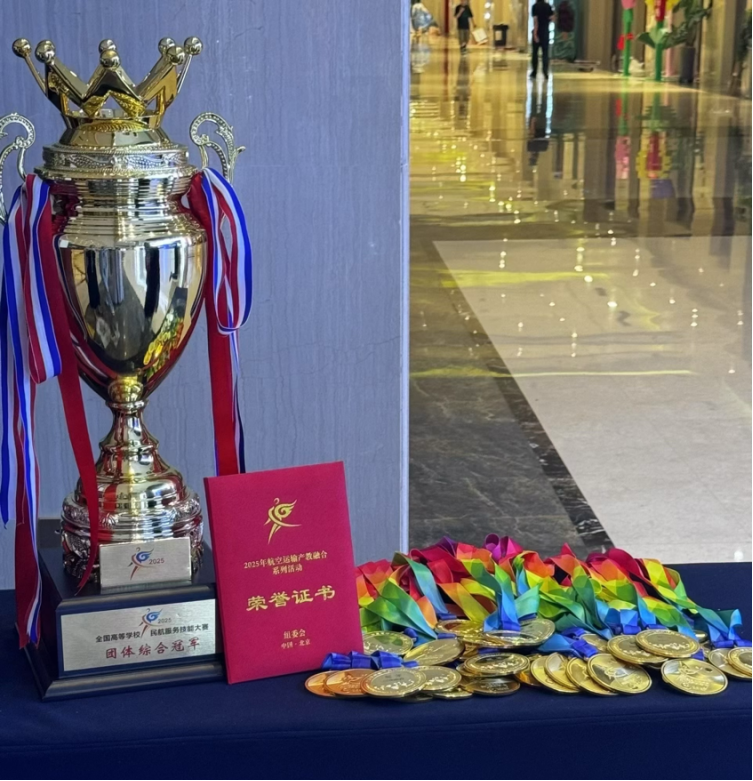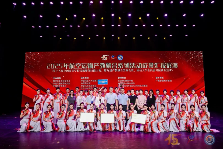 2025年航空运输产教融合系列活动7月24日在北京圆满落幕,9428cn太阳集团古天乐在活动中喜报频传,公司摘得“就业工作先进单位”荣誉称号,空乘专业代表队成功卫冕高职高专类团体综合冠军并斩获两项单项奖。董事长何保华、9428cn太阳集团古天乐负责人出席活动。