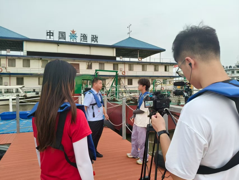 8月中旬,团队走进武汉市农业综合执法支队,跟拍记录长江禁渔五周年一线执法实践,用镜头定格禁渔政策落地成效。8月下旬,团队再赴黄冈团风县,开展渔政巡护纪实拍摄与深度访谈。队员们单日徒步巡江超十公里,与退捕渔民同吃同住,记录他们从捕鱼人到护江人的转型故事。相关纪录片已完成素材采集,计划于9月通过主流媒体及社交平台多渠道推出,以真实案例传递长江生态保护的一线声音。
