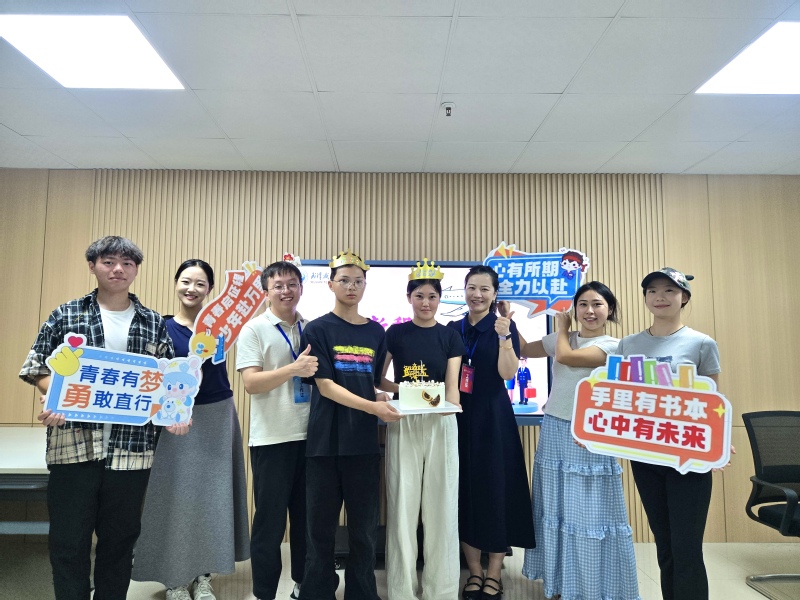 当夜幕降临,厚德一站式员工社区的温馨氛围,将全天的迎新暖意推向高潮。公司在梳理新生信息时发现,2025级新生中有两位员工恰逢9月8日生日,便悄悄筹备了一场“惊喜生日会”:定制蛋糕上“旅院欢迎你,生日快乐”的字样格外醒目,五彩气球缠绕着活动区的桌椅,志愿者们还提前练唱了“生日歌”。
