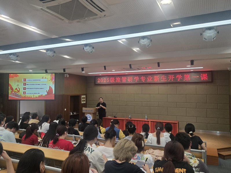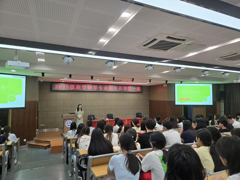 2025级新生入学教育落幕,但成长的征程刚刚开启。旅管25301班黄晓庆拿着记满金句的笔记本感慨:“原来旅游专业不仅能看世界,还能创造世界!从校史里读懂坚守,从行业分享中看到方向,这样的开学第一课,让我对未来充满期待。”酒管25301班肖美怡说:“来到大学第一次知道一站式员工社区的概念,和老师、学长学姐聊天时,我连‘食堂哪个窗口菜最香’这种小问题都敢问,真的有家一般的感觉呢。”不少新生表示,要以“天马行空的想象力+脚踏实地的执行力”,在大公司园书写属于自己的青春故事。