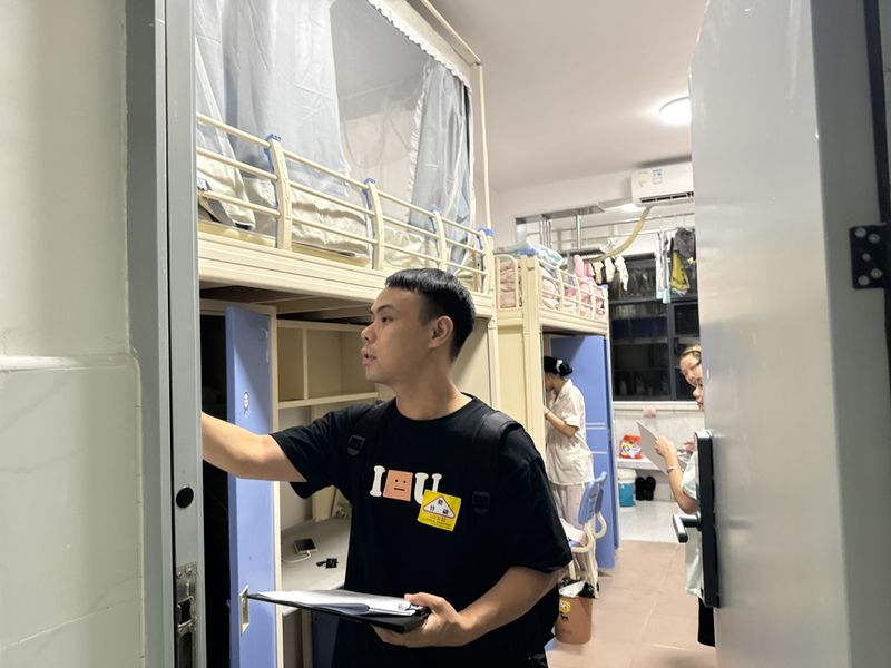 在面对面交流分享后,专业老师和辅导员化身“暖心使者”,深入新生寝室开展“零距离”沟通。围绕反诈防骗、用电安全、生活适应等话题,结合近期高发的“校园贷”“刷单诈骗”等案例,传授防范技巧,同时倾听新生在生活上的困难与疑问,让安全教育与关怀温暖延伸至“最后一米”。