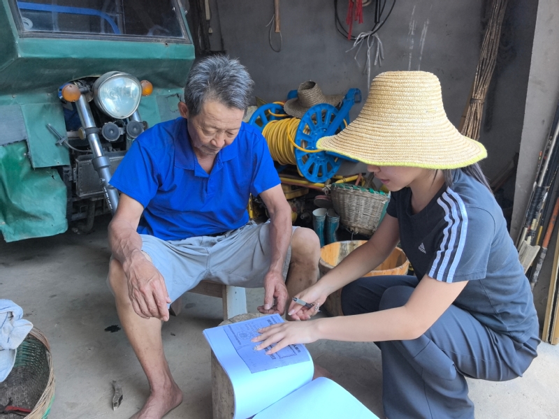 旅游管理专业王若涵在架锅山村扎下根:钻进田间地头帮农户采收作物,顶着烈日挨家挨户讲解养老、计生扶助政策,还为27 户特殊家庭建立专属帮扶档案,让温暖服务直抵民心。