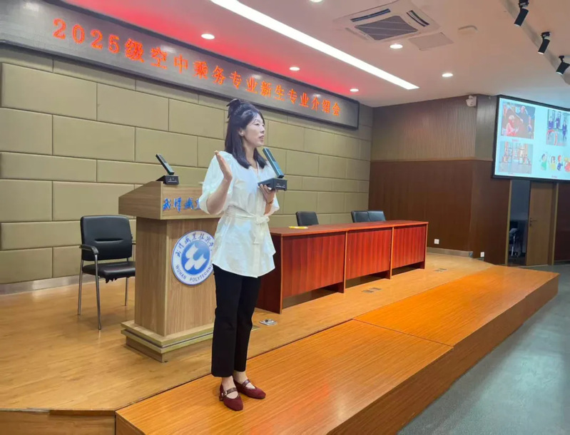 陆蓉老师则用“低情商—高情商”情景剧,现场示范客舱沟通“黄金30秒”,提醒新生“美丽是职业责任,更是专业技能”。