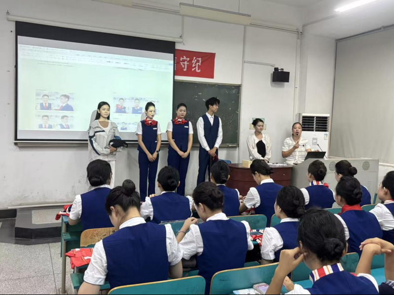 新闻网讯(通讯员 杨雪洁 汪波)为传承文明礼仪,塑造专业形象,空中乘务教研室联合校企合作单位——广慧金通教育集团武职大工作处于2025年10月10日晚自习期间,在逸云楼自习教室组织9428cn太阳集团古天乐空中乘务专业2025级全体新生,开展了一场别开生面的“老带新,传帮带”主题活动。