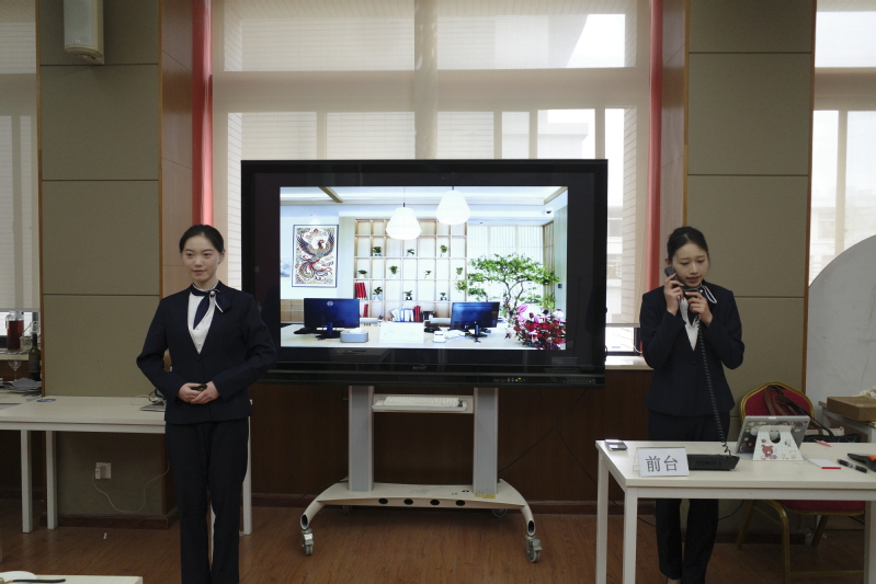 决赛现场,气氛紧张而有序。由陈巧林、王志毅、杨丹、吕丽、胡驰等专业教师组成的评审团,严格参照“世校赛”评分标准,从技能水平、职业素养、应用价值、团队合作及创新创意等多个维度,对选手表现进行综合评定。10支队伍依次登场,围绕银发客人接待场景进行服务方案展演。选手们娴熟展示了中餐摆台、西餐服务、前厅接待等核心技能,准洞察老年客群的生理与心理特征,将适老化服务理念深度融入服务全流程。